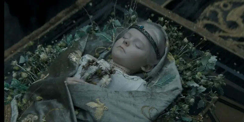 Эйгон не хотел, чтобы тело его сына “тащили как мертвую собаку” по всему городу. Хелена, принцесса, похожая на застывшую статуэтку скорби, тоже не хотела публичных похорон.