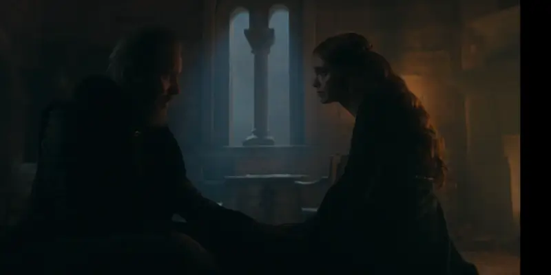 Алисента зашла в покои короля и увидела его опустошенным, охваченным горечью. Она молча отправилась к себе, и Кристон вслед за ней.