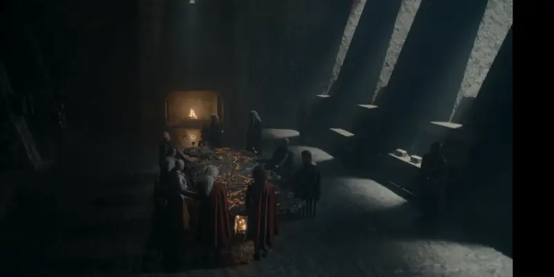 На военном совете, лишенном присутствия Рейниры, разгорается конфликт. Рейнис, словно корабль в бушующем море, пытается успокоить членов совета, обращаясь к стремлениям Рейниры покончить с войной. Но гнев Эйгона, словно вулкан, не утихает. Он требует от Совета захвата Харренхолла, но его не слышат.