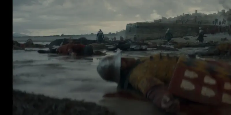 Коль оглушен. Очнувшись, он ищет короля. Вокруг разруха, пожар, поле боя усыпано трупами. Кристен видит Эйдмонда, идущего с мечом. Тот находит королевский нож. Кристен Коль, охваченный печалью, понимает, что Эйгон, сделавший его Десницей и одаривший властью, мертв. 🗡️