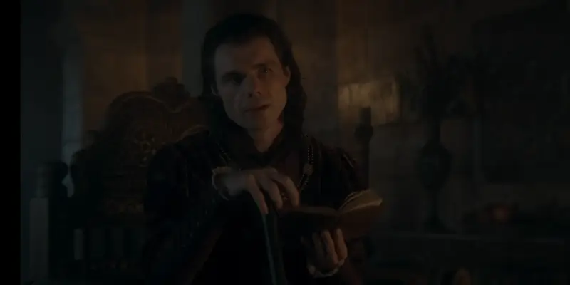 Мастер над шептунами рассказывает на Совете о проклятии Харренхолла, словно предчувствуя безумие Дэймонда. Он говорит, что замок сведет его с ума. 😨